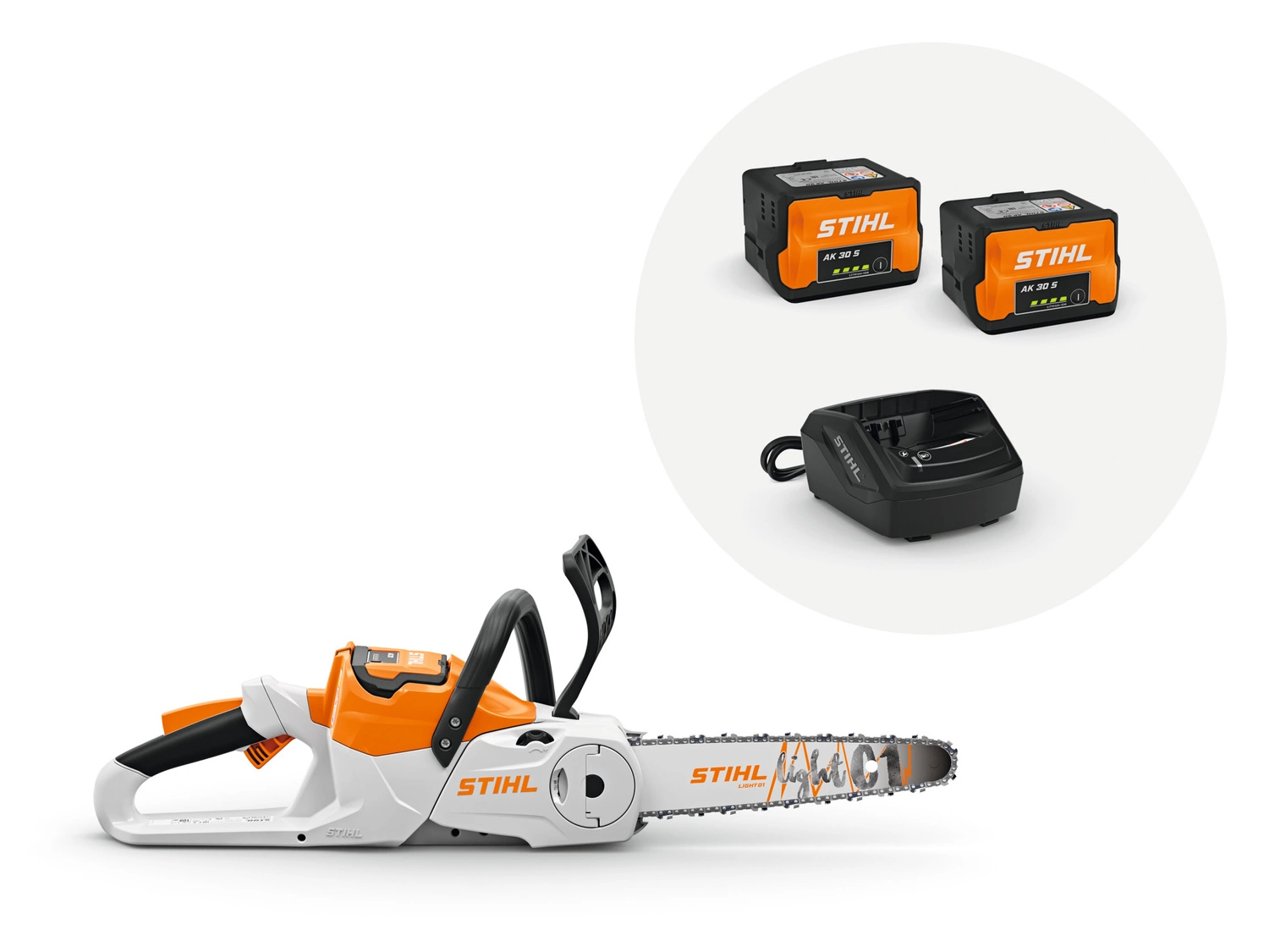 Lekka i łatwa w obsłudze akumulatorowa pilarka łańcuchowa, idealna do okazjonalnej pielęgnacji terenów przydomowych, cięcia leżących kłód oraz prostych prac rzemieślniczych. Zestaw zawiera 2 akumulatory AK 30 S i ładowarkę AL 101.
